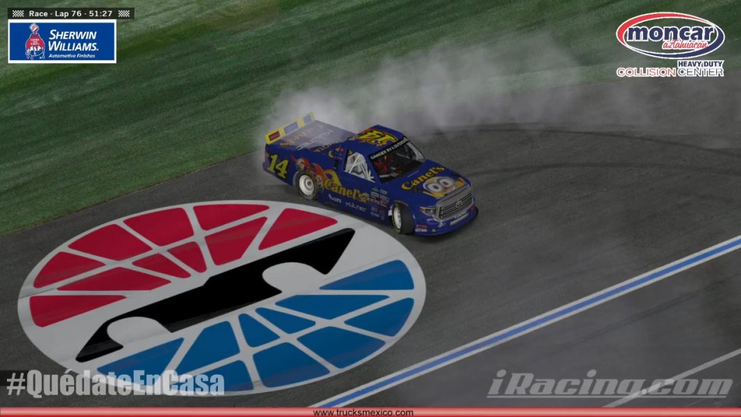 Ciudad de México, a 12 de mayo de 2020.- Emocionante resultó la segunda fecha de Trucks Virtual México Series presentado por MONCAR, carrera que tuvo varios cambios de líder y de la que resultó vencedor el potosino Alex de Alba, conquistando el Monday Night.