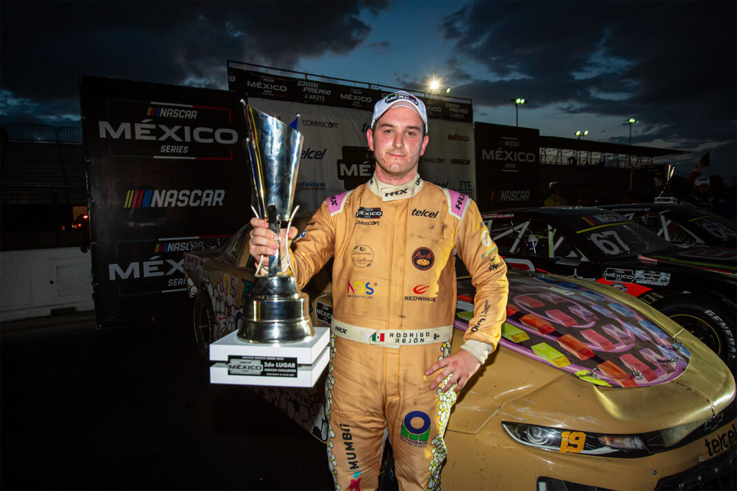 Monterrey, Nvo. León, a 30 de julio de 2023.- En un final agridulce, Rodrigo Rejón sumó un nuevo podio a su cuenta el sábado por la tarde en el trazado del “Frijol” en el Autódromo Monterrey, recinto que recibió la 7ma fecha de NASCAR México Series, presentando una estupenda entrada en las tribunas.