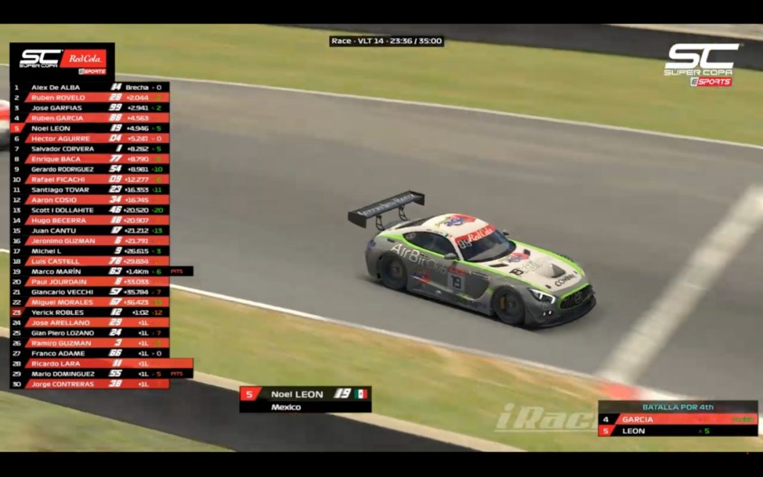 Noel León, es uno de los más habilidosos en el deporte virtual, demostrándolo al conseguir el lugar 5 con el Mercedes #19 en una parrilla nutrida de 35 participantes, muchos de ellos con gran experiencia en las pistas, por lo que este representa un buen inicio para él.