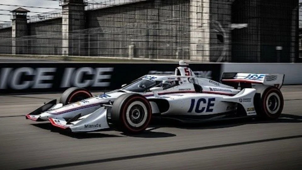 La publicación, compartida en redes sociales el martes, incluye una imagen generada por computadora de un auto estilo IndyCar con el número 5 —el mismo que usa O’Ward en la serie— decorado con múltiples logotipos de “ICE”, la agencia de Inmigración y Control de Aduanas. La imagen muestra el vehículo en una pista de carreras, con un edificio de aspecto carcelario al fondo.