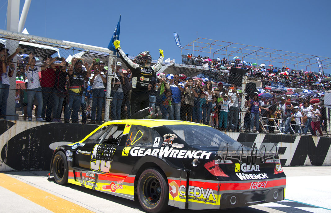 Aguascalientes, Ags., 16 de julio de 2017.- En emotiva competencia de la serie NASCAR Challenge, el piloto capitalino del equipo GearWrench / Grupo CEDVA, Jorge Contreras Jr. logró su segunda victoria de la temporada 2017 la tarde de este domingo en el marco de la sexta fecha del campeonato NASCAR México Series, realizada en el Óvalo Aguascalientes México.