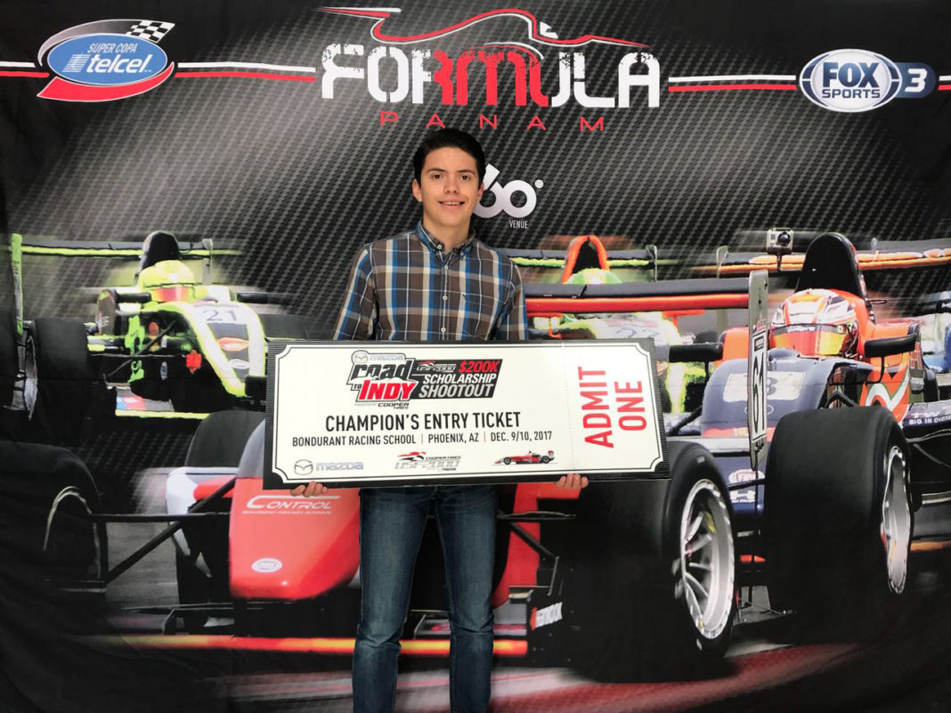 Ciudad de México, 14 de noviembre de 2017.- Un nuevo logro se suma a la carrera del piloto mexicano Manuel Cabrera, ya que debido a su buen desempeño en la Fórmula PANAM, campeonato que se encuentra liderando, ha decidido otorgar al mexiquense el boleto para participar este año en el Shootout de Mazda Road To Indy 2017. Evento que se realizará los próximos 9 y 10 de diciembre en Phoenix, Arizona, el cual otorga al ganador una beca para competir en el Campeonato USF2000 en Estados Unidos en el 2018.