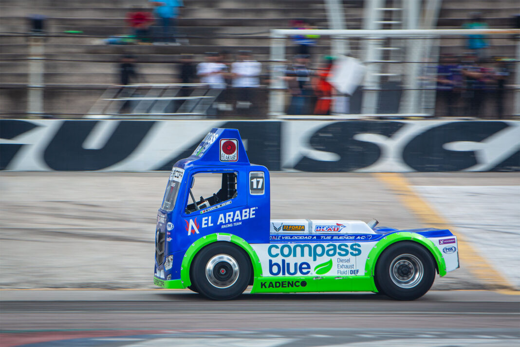 Volvió la acción de la Súper Copa con una interesante visita a la pista hidrocálida de 1,987 metros de longitud, en la que se pudo sentir el poder regiomontano con “El Árabe Racing Team by Compass Blue” en los Tractocamiones, comenzando con las prácticas y sesión de calificación que le dejaría el lugar 3 de arrancada para “El Árabe” Juan Cantú y su tracto #17.
