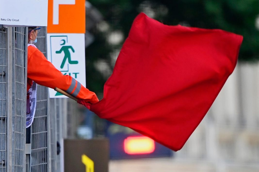 Un fallo en los neumáticos de Max Verstappen en los últimos compases de la carrera en Bakú provocó inicialmente un periodo de coche de seguridad antes de que Masi lanzara la bandera roja, suspendiendo la carrera.