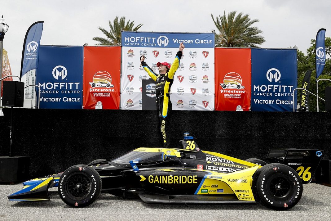 Colton Herta hizo valer su pole position en Florida para ganar la segunda carrera de la temporada. El mexicano Patricio O’Ward vivió una tarde complicada.