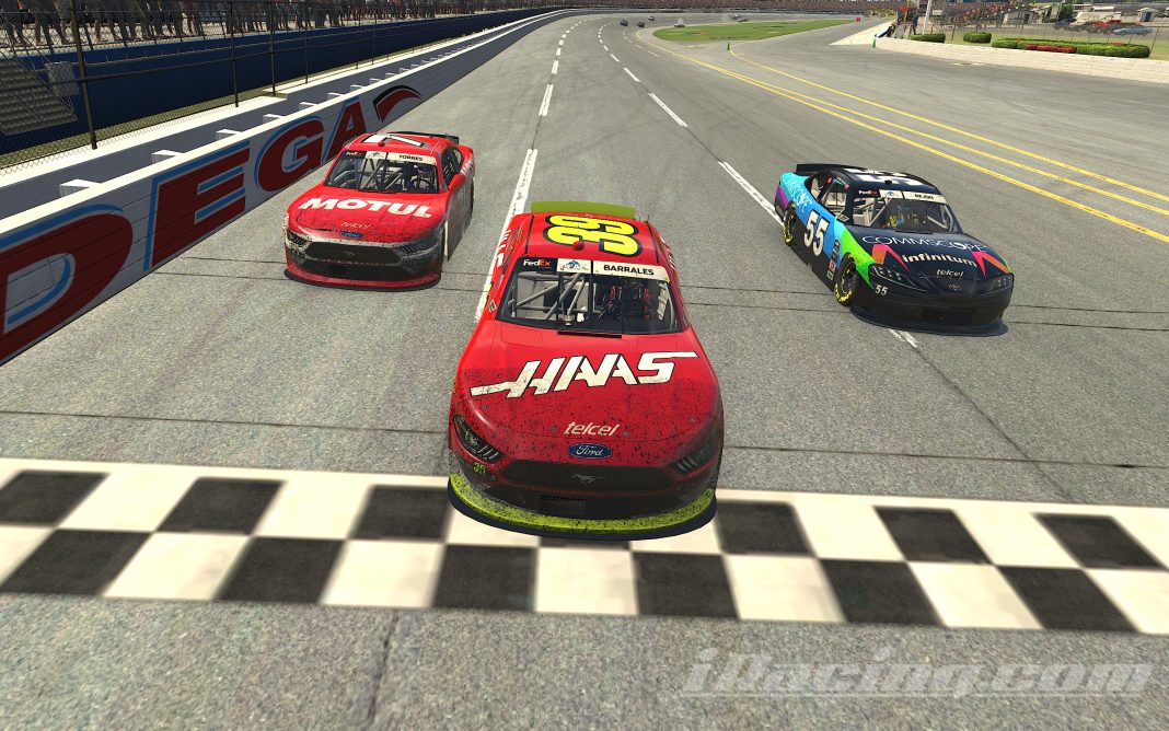 San Luis Potosí, S.L.P., a 12 de junio de 2020.- El piloto potosino, Víctor Barrales Jr., continúa con paso firme en los eSports y tras tomar el liderato de Trucks Virtual México Series este viernes por la noche consiguió el triunfo en la versión iRacing de NASCAR México Series, en un final de auténtico “Photo Finish”, en la pista de Talladega en la que significó la 8va fecha puntuable del campeonato.